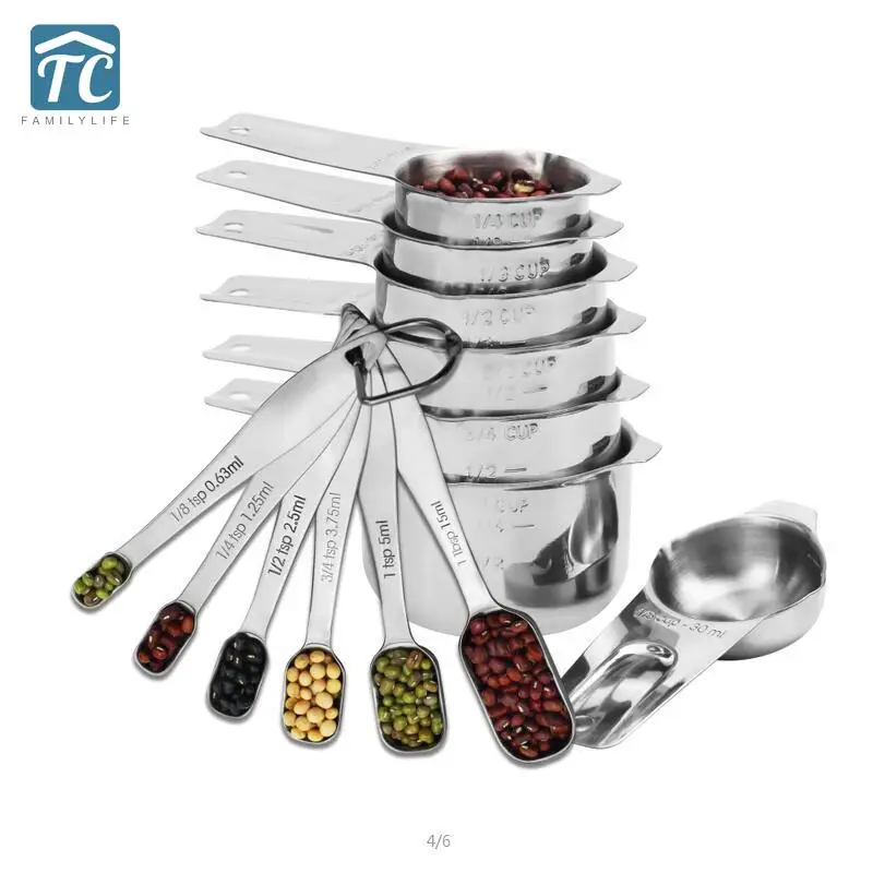 BEST QUALITY 304 Stainless Steel Measuring Cup Spoon 13PCS Kitchen Baking Tools Measuring Spoons Kitchen Househo