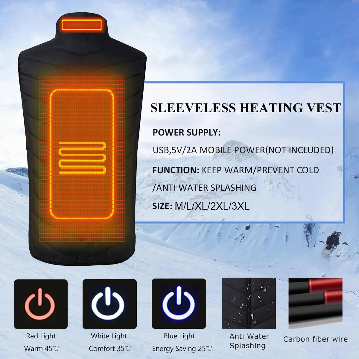 NEW Men Women Electric Heated Vest Heating Waistcoat USB Thermal Warm Cloth Feather Winter Jacket C