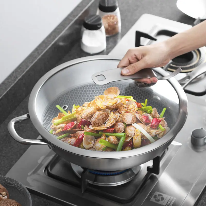 HOT Sale Wok Stainless Steel Uncoated Non-stick Wok Pan Gas Induction Cooker Household Pot Cooking Pot Kitch