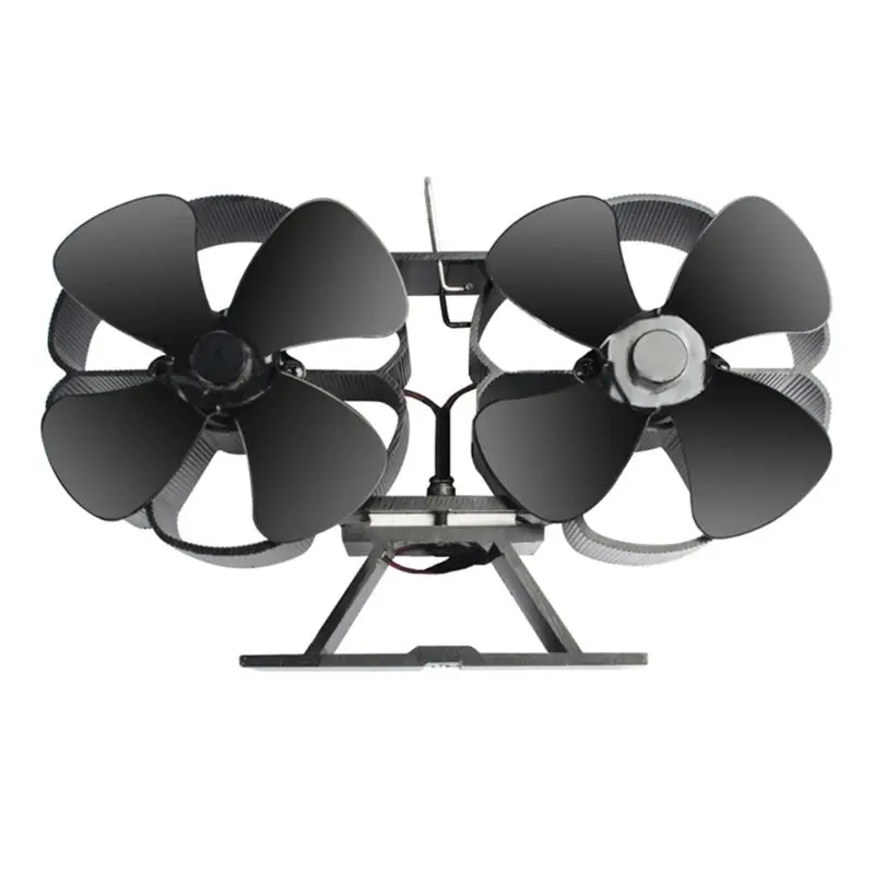 TOP Double Motor 8 Blades Heat Powered Stove Fireplace Eco Fan Silent Fuel Saving