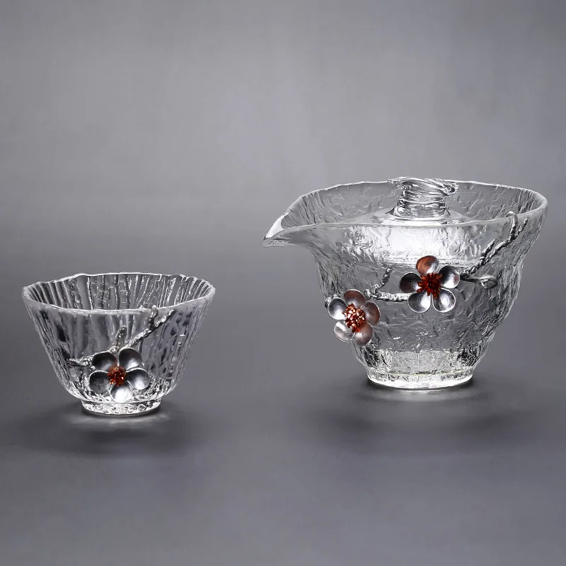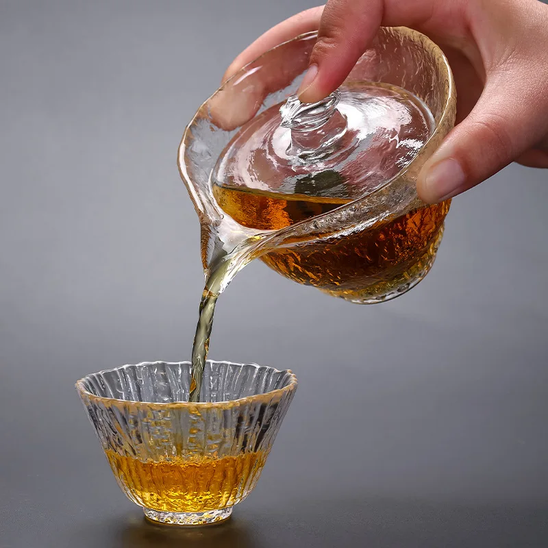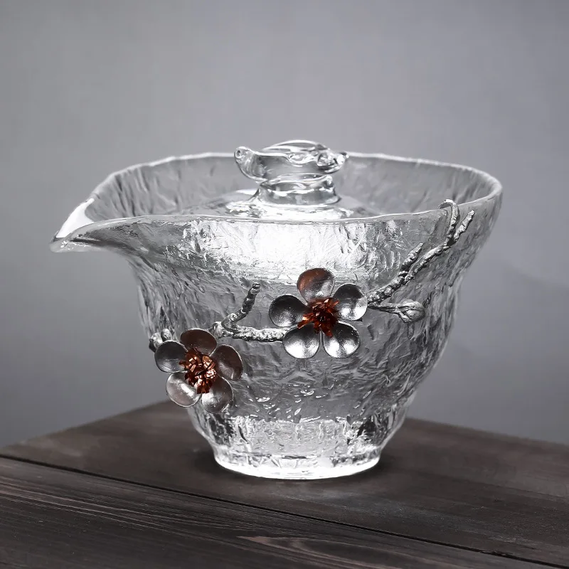 Gaiwan Bowl Tin Flower Japanese Style Teacup Glass Sancai Cover Bowl Tea Maker Hand Grip Pot Kung F