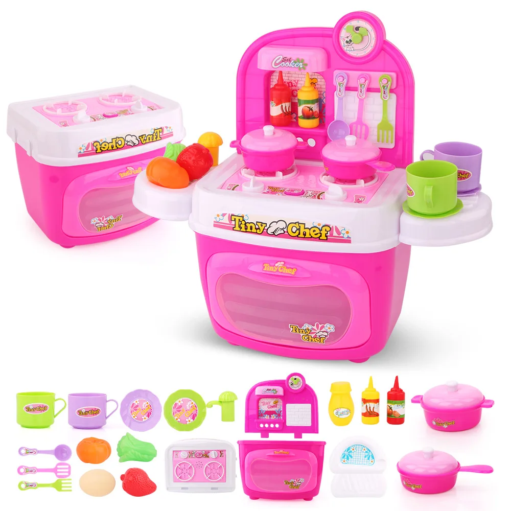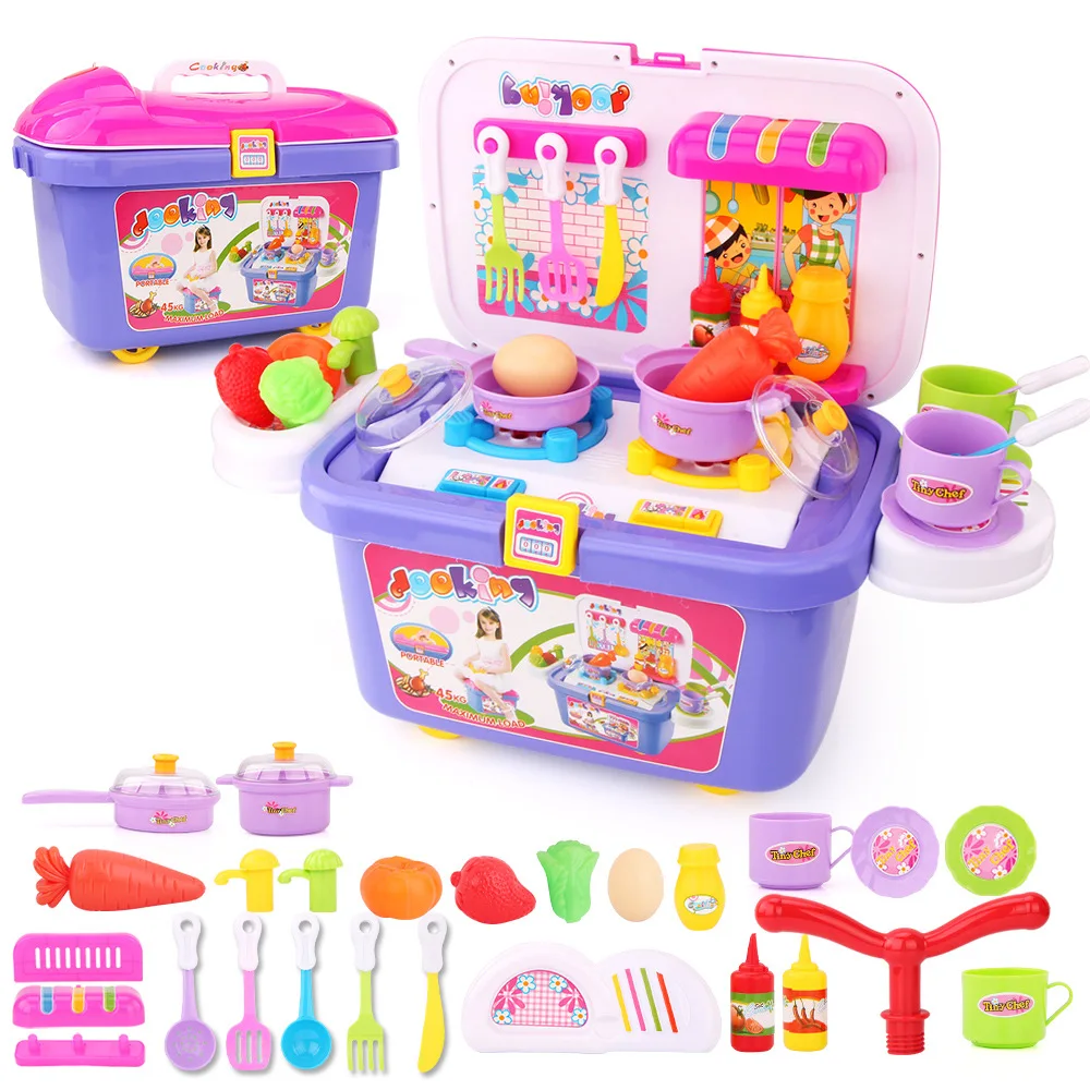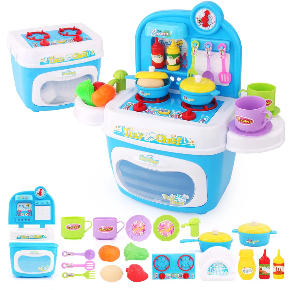 Children Play House Kitchen Toy Set Model Kitchen Cooking Toy with Light And Music Barbecue Tablewa